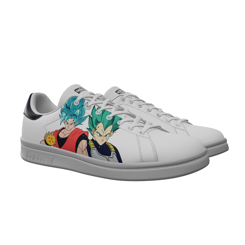 White Adidas Stan Smith trainers featuring a hand-painted design inspired by Dragon Ball Z. Our expert process ensures that the artwork is durable, maintaining its beauty even after extensive wear.