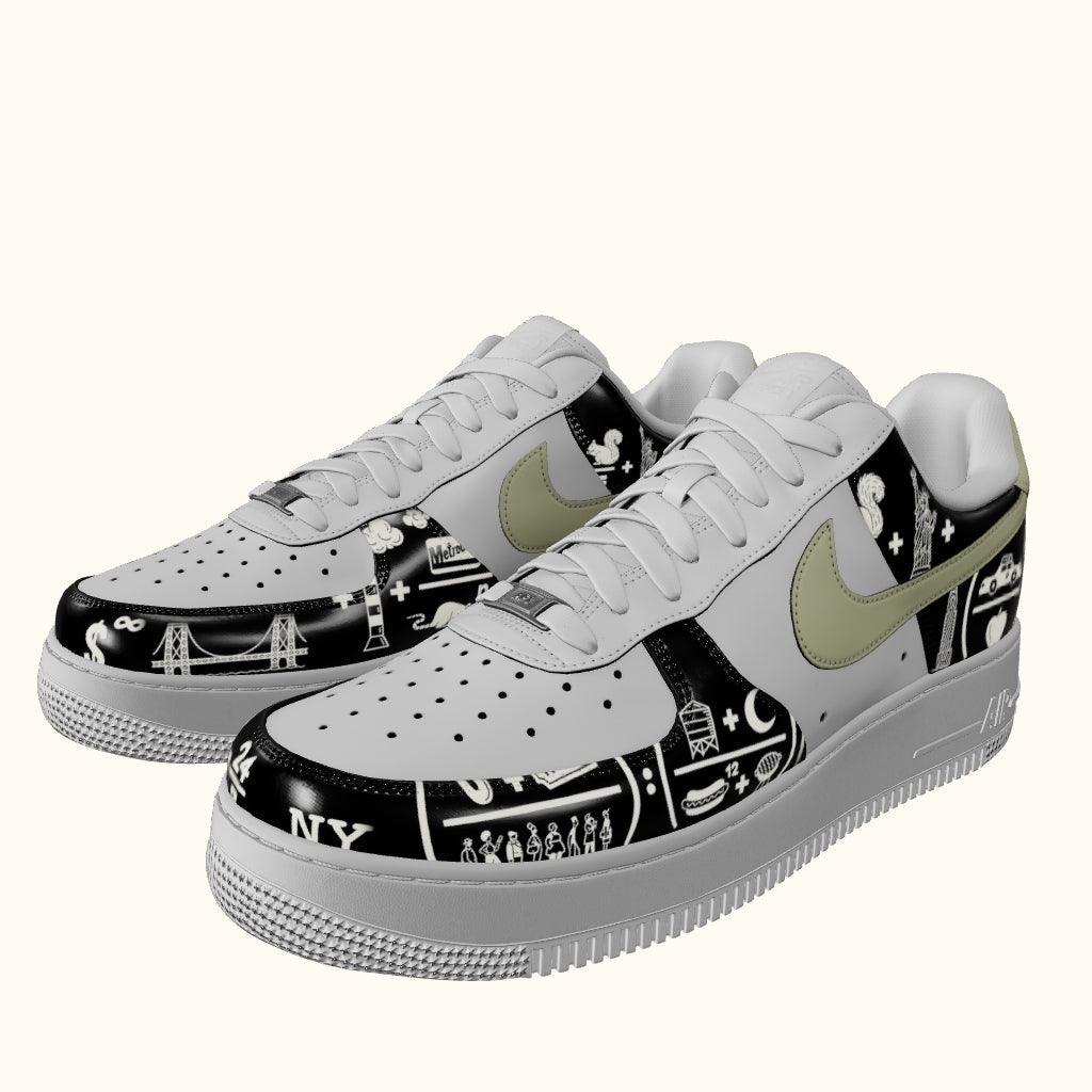 Nike Air Force 1 “NYC Formula” — Hand-painted and reflective vinyl custom.